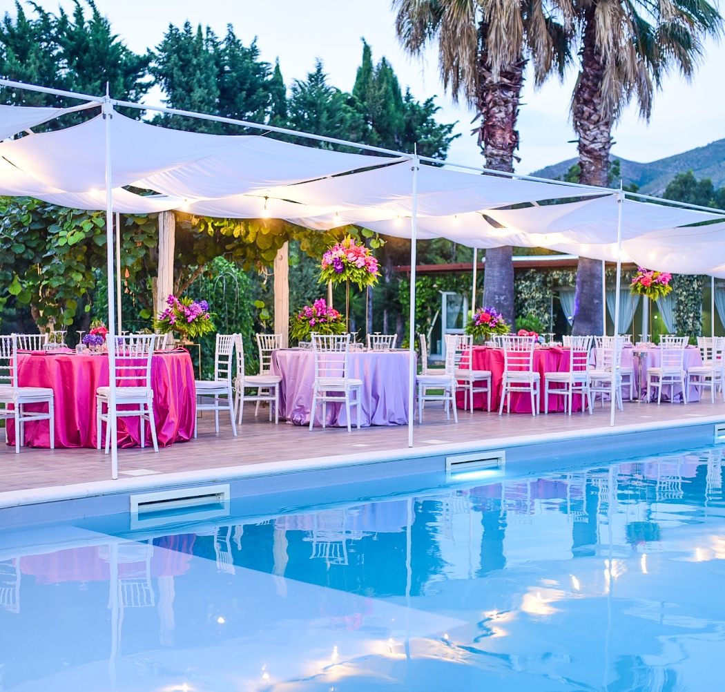 La piscina della masseria aggiunge freschezza, eleganza e possibilità scenografiche al tuo evento.